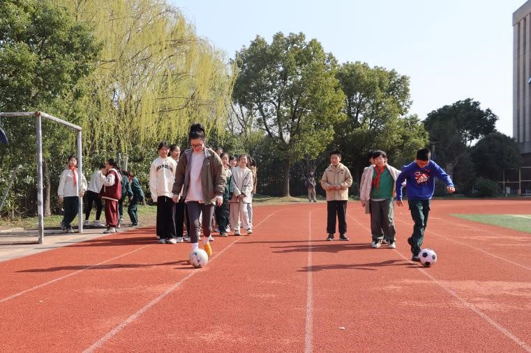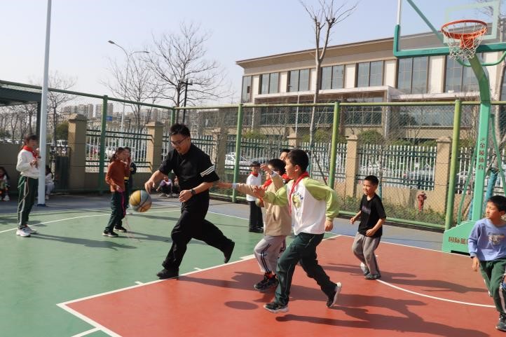 春日午后,湖州市湖师附小教育集团的操场突然 “变装” 成大型运动场。只见副校长沈惠泉甩掉西装外套,露出藏在里面的黑色运动 T 恤,正和四年级学生一起比投篮——这不是体育课,而是该校新推出的“师生运动搭子”小课间。