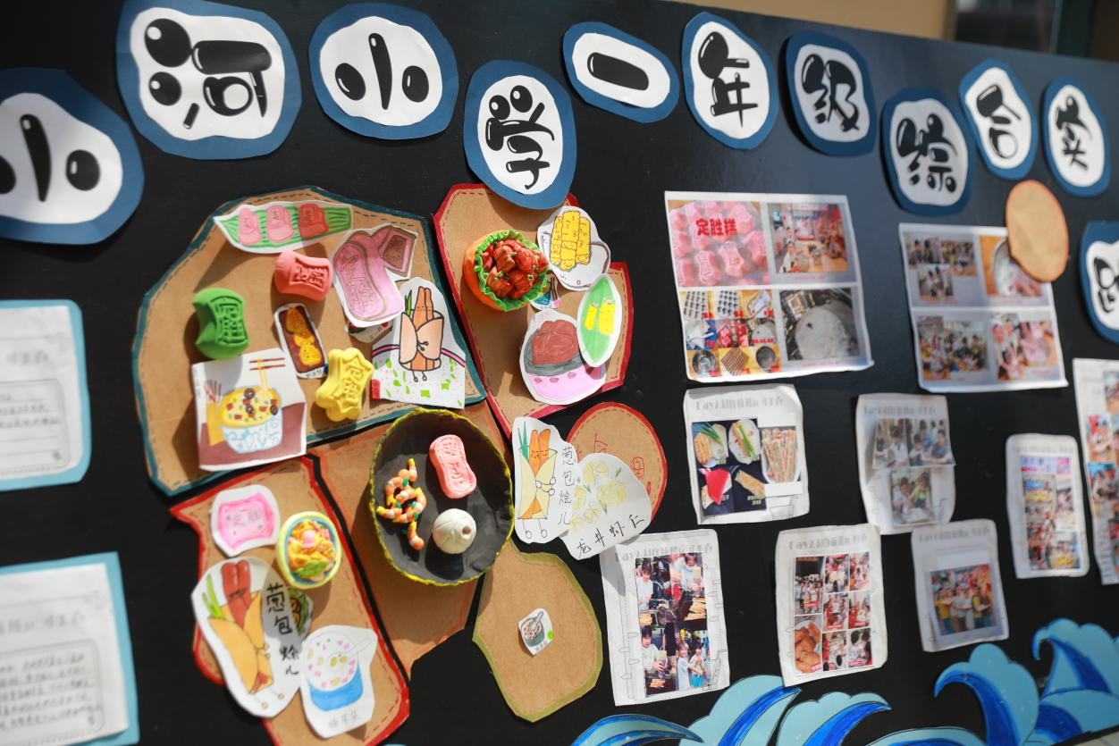 校园内的“幸福走廊”化身为艺术长廊,“迎六一”校本课程学生实践作品展亮相其中。展览汇集了绘画、剪纸、书法、摄影等多种形式的作品,既体现了对传统文化的传承,也展现了现代艺术的创新实践,营造出浓厚的校园艺术氛围。