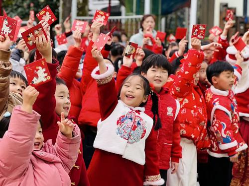 清晨,阳光洒满校园。老师们身穿红色衣服,早早站在园区门口,用笑容和拥抱迎接每一位小朋友。孩子们蹦蹦跳跳地走进校园,收到老师精心准备的“小马红包”。红包寓意“马到成功”,寄托着老师们对孩子新学期进步的期待。孩子们拿着红包,在打卡区拍照留念,一张张笑脸为春日的校园增添了无限生机。