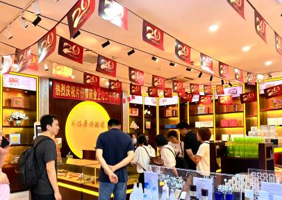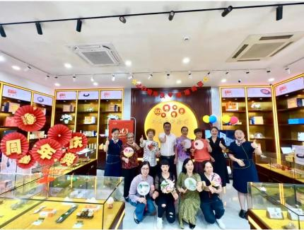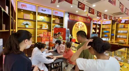 2023年5月20日,杭州片仔癀体验馆解放路店在店内开展手工DIY典雅团扇周年庆、H5问答抽奖等,恭祝片仔癀公司上市20周年。