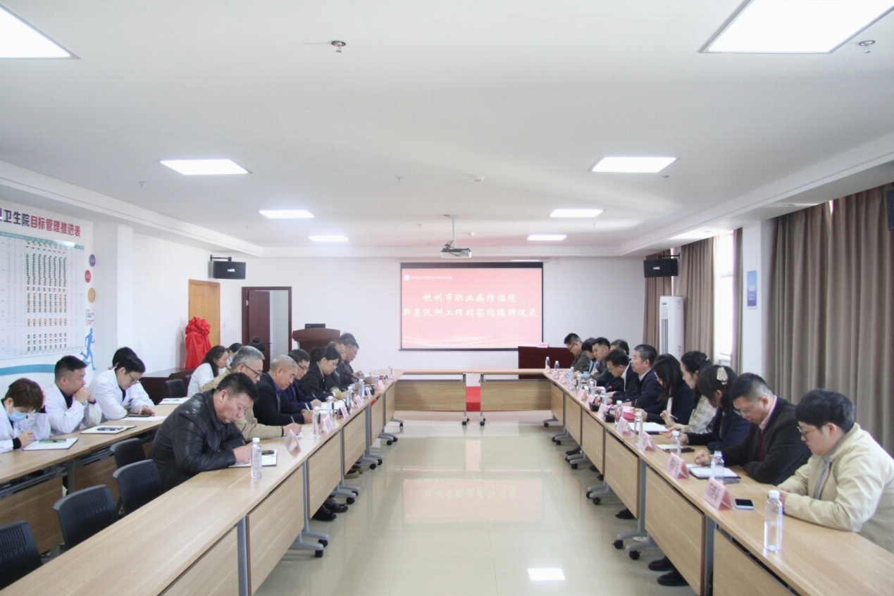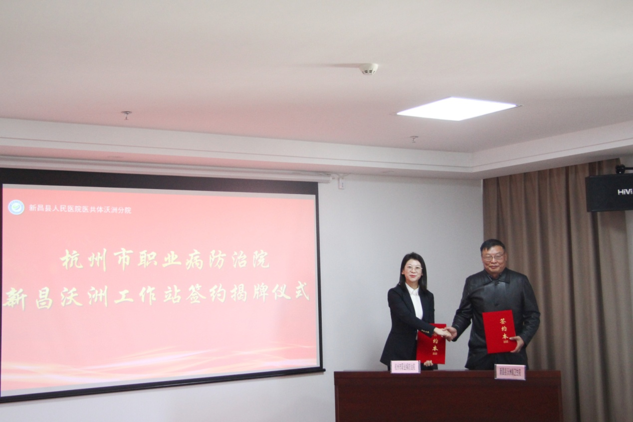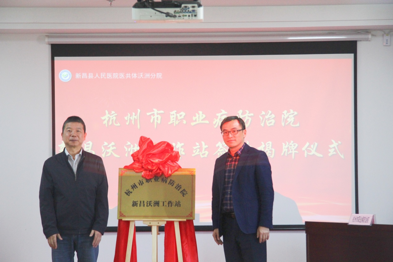 11月20日上午,杭州市职业病防治院新昌沃洲工作站签约揭牌仪式在绍兴市新昌县人民医院医共体沃洲分院(沃洲镇卫生院)举行。