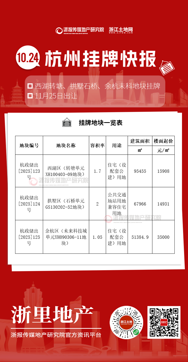 11月杭州土拍预告:未来科技城、转塘、石桥宅地来了