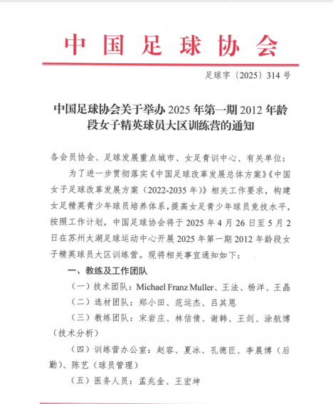 今年4月,中国足球协会公布《举办2025年第一期2012年龄段女子精英球员大区训练营的通知》,景芳中学805班白欣田入选集训队名单。