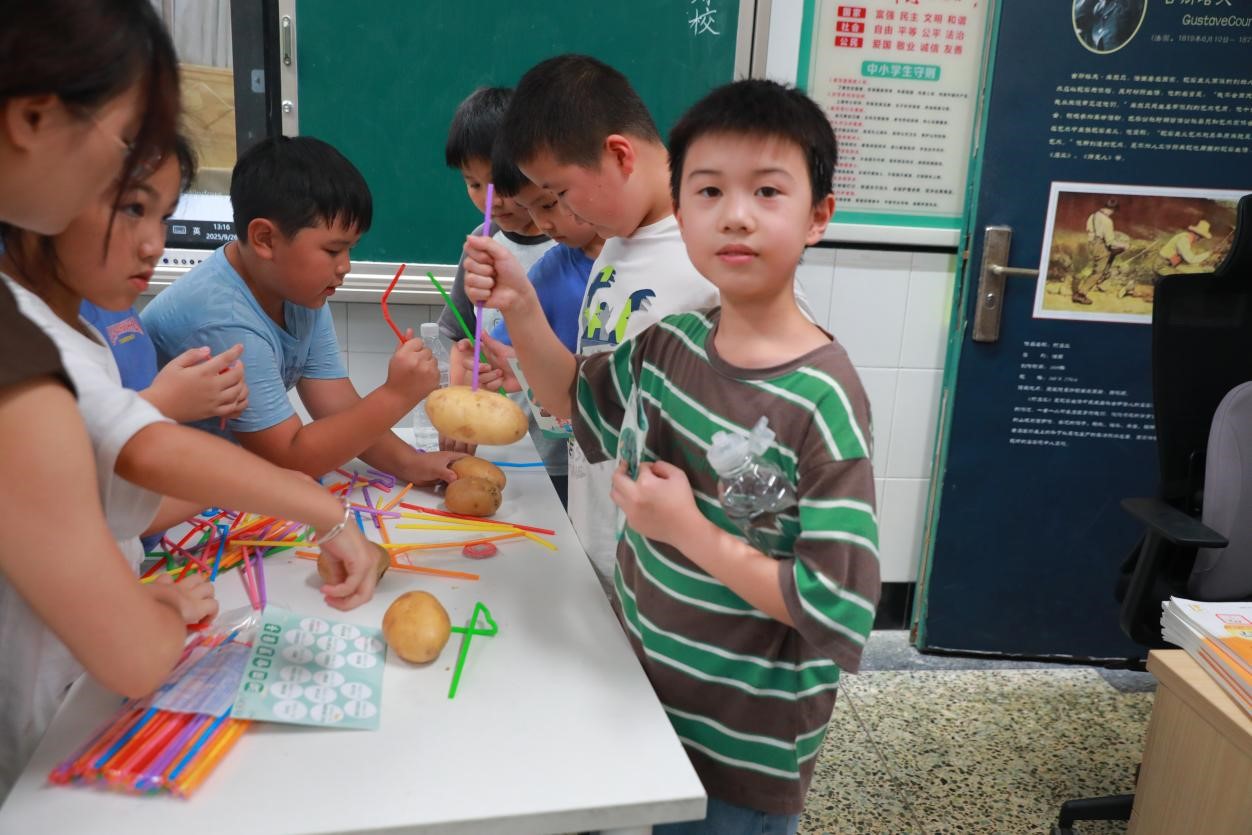 一年级的小朋友在六年级哥哥姐姐的带领下,也加入了这场欢乐的游园活动。六年级的孩子们耐心地指导着一年级的小朋友,确保他们的安全,同时也传递着科学的乐趣。